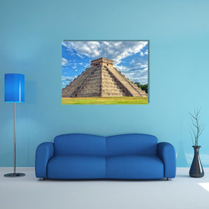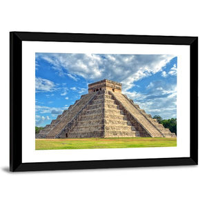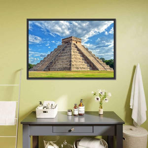 This canvas art features the majestic El Castillo pyramid at Chichen Itza, surrounded by lush green grass and bright blue skies. Its photorealistic style and serene atmosphere evoke the ancient history of the Mayan ruins, making it a perfect addition to your wall decor.