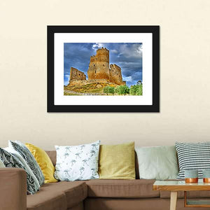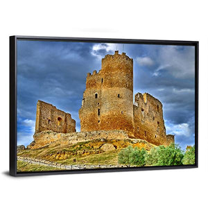 This captivating canvas features the imposing ruins of a stone castle against a stormy sky, showcasing dramatic browns and grays. Its photorealistic style captures the ancient charm of Italy, making it a striking addition to any art collection.