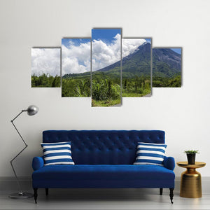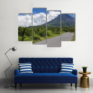 This canvas wall art beautifully captures the serene and grand Merapi Mountain, framed by lush green vegetation and fluffy white clouds. Its realistic portrayal invites a natural atmosphere to any space.