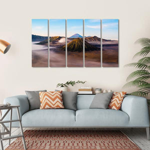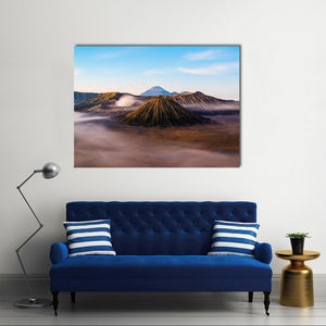 Capture the tranquil beauty of Mount Bromo with this stunning canvas wall art featuring a serene volcanic landscape. The mist enveloping the mountains creates a majestic atmosphere, making it a perfect addition to any nature-inspired decor.