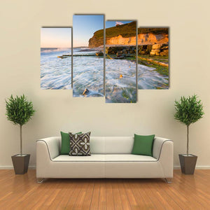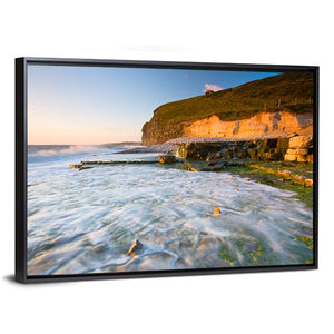 This canvas wall art showcases the serene beauty of Monknash Beach, featuring coastal cliffs and tranquil ocean waters. With a stunning naturalistic style, it brings a calming vibe to your space.