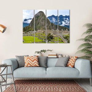 This canvas art captures the grandeur of Machu Picchu, showcasing the ancient Inca ruins against a backdrop of majestic mountains and serene grassy slopes. The rich palette of green, gray, blue, and white reflects the timeless beauty of this iconic landscape.