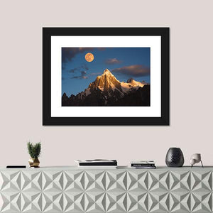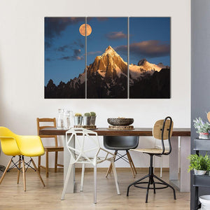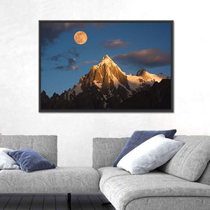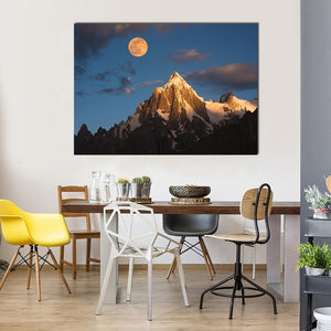 Experience the majestic beauty of Paiyu Peak with this stunning canvas wall art. Featuring a serene landscape of snow-capped mountains bathed in golden hour light, it captures the enchanting moods of nature under a full moon. This piece effortlessly adds a natural charm to any space.