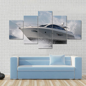 Experience the thrill of sailing with our Yacht Jump Canvas Wall Art. This dynamic piece captures a yacht leaping over ocean waves, showcasing the powerful energy of the sea. Its modern design and vibrant blue and white palette make it a striking addition to any space.