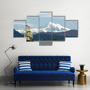 This canvas wall art captures a majestic tall ship sailing across peaceful waters, with the stunning backdrop of Mount Baker and surrounding forests. The vintage-inspired piece adds a touch of adventure to your décor.