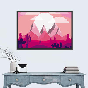 Experience the captivating blend of desert and mountain landscapes with our Mountain And Desert Illustration Canvas Wall Art. This stunning piece is expertly designed to evoke a range of emotions, making it the perfect addition to any art lover's collection or home decor. The striking and powerful canvas print will demand attention and elevate your space.