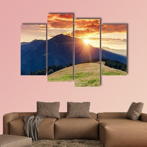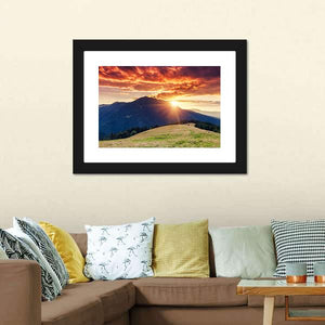Sun Rays Behind Mountain at Sunset Canvas Wall Art