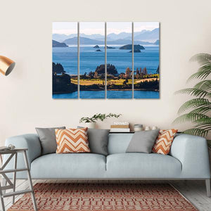 Capture the tranquility of Patagonia with this canvas wall art featuring Nahuel Huapi Lake. The serene composition showcases lush islands, majestic mountains, and colorful trees, creating a scenic escape for your space.