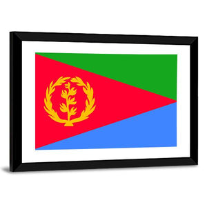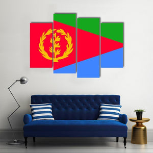 This canvas features the Eritrean flag, rendered in a flat design that highlights its red, green, blue and yellow palette and the olive wreath symbol. The rule-of-thirds composition creates a balanced, patriotic feel that fits well in modern home decor and room accents.