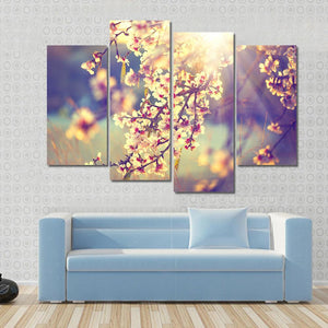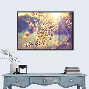 This canvas art captures blossoming branches warmed by sunlight, creating a serene and tranquil atmosphere. Ideal for adding a touch of nature to your space.