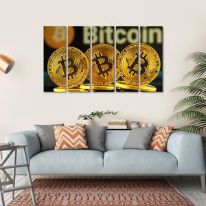 Celebrate the world of cryptocurrency with our Bitcoin canvas wall art. Featuring a striking close-up of three gold coins against a modern black and white palette, this piece exudes opulence and sophistication, perfect for any stylish space.