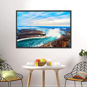 This beautiful canvas art captures the majestic Niagara Falls, showcasing a serene waterfall surrounded by a vibrant natural landscape. The cool palette of blue, white, green, and brown enhances its powerful presence, making it a stunning addition to your décor.