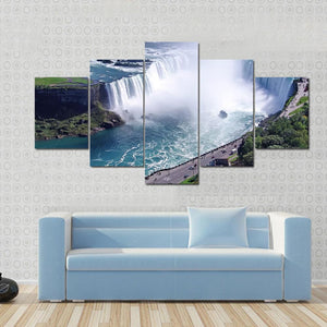 This stunning canvas captures the majestic beauty of Niagara Falls, showcasing its powerful waterfall surrounded by lush trees and rocky cliffs. The photorealistic style and natural palette of blues and greens evoke a sense of awe and tranquility, making it a perfect addition to any nature lover's decor.