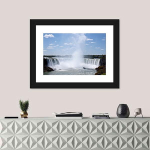 This breathtaking canvas art captures the majestic Horseshoe Falls, showcasing the powerful cascade of water with a serene atmosphere. The vibrant blue skies and lush greenery evoke a sense of natural beauty, making it a stunning addition to any wall decor.