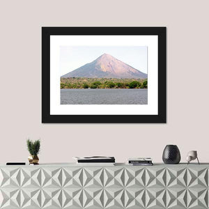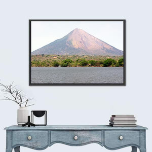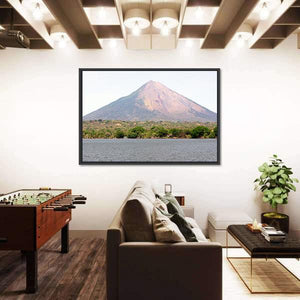 Capture the tranquility of nature with this beautiful canvas art featuring a serene lake, lush trees, and a majestic volcano. The peaceful palette of green and blue evokes a calming atmosphere, making it a wonderful addition to any space.