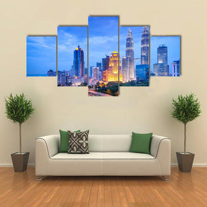 Experience the vibrant urban landscape of Kuala Lumpur with this captivating canvas wall art featuring the iconic Petronas Towers against a twilight sky. The colorful palette of blue, orange, and grey brings the city skyline to life, making it an engaging piece for modern decor.