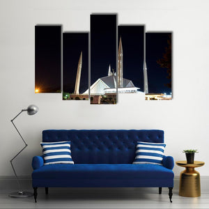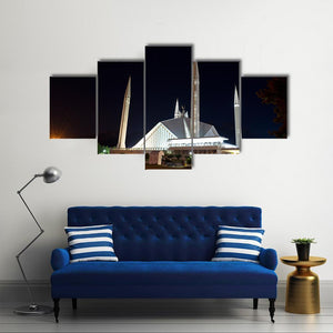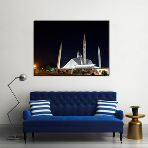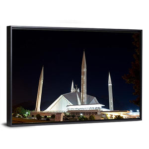 This canvas art captures the grand beauty of the Shah Faisal Mosque against a starry night sky. With its striking architecture and symmetrical design, this piece brings a serene yet powerful presence to any space.