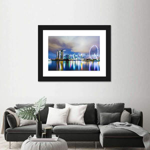 Capture the vibrant essence of Singapore with this stunning city skyline artwork. Featuring iconic landmarks like Marina Bay Sands and the Singapore Flyer, this piece celebrates the modern city lights reflected in serene waters, creating a captivating atmosphere.