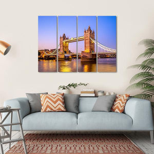This captivating canvas features the iconic Tower Bridge in London at night, showcasing its stunning illumination and reflections on the river. The serene atmosphere and realistic detail make it a perfect addition to your wall decor.