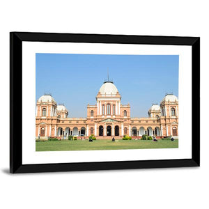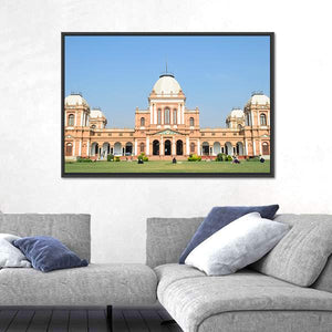 This canvas artwork features the striking architecture of the Noor Mahal in Bahawalpur, showcasing its majestic dome, arched windows, and elegant columns set against a serene blue sky and lush green lawn. Its traditional style and symmetrical composition make it a captivating addition to any space.