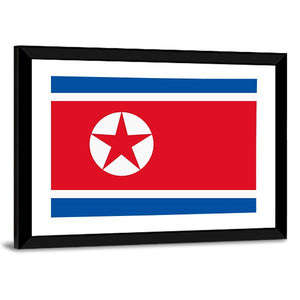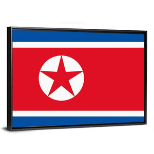This modern canvas art features the bold and striking North Korean flag. Crafted with a vibrant palette of red, white, and blue, it serves as a powerful statement piece for your wall decor.