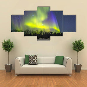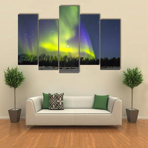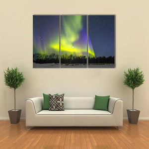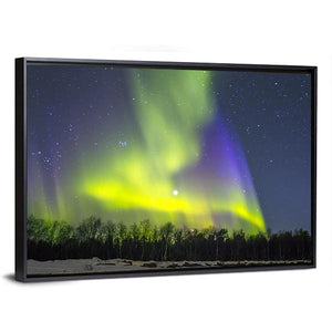 Experience the enchanting aurora borealis in this peaceful canvas wall art. Featuring a mesmerizing night sky above a snowy landscape, it brings a wondrous and mysterious vibe to any space.