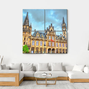 This canvas art captures the historic Old Post Office in Ghent, featuring its grand architecture and imposing tower. With a palette of yellow and blue, it evokes a sense of history and elegance, making it a striking addition to any room's décor.