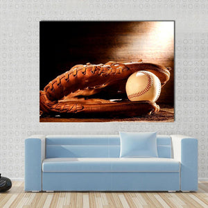 This canvas art features a close-up of a worn leather baseball glove and a stitched baseball, evoking a nostalgic and sporty vibe. Its rustic, vintage style makes it an appealing addition to any sports enthusiast's collection.