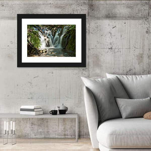 This canvas art captures the serene beauty of the Olinda Falls, showcasing a tranquil waterfall surrounded by lush greenery and rocky outcrops. With realistic details and a soothing color palette of greens, browns, and grays, it's a perfect addition to any nature lover's decor.