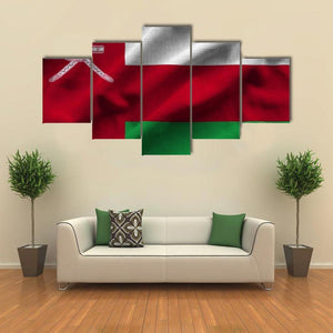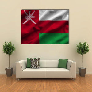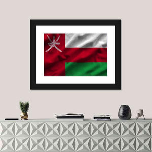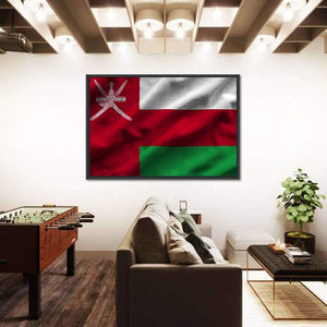 This canvas features the Omani flag with its emblem, rendered in red, white and green for a proud, patriotic mood. The image follows a rule-of-thirds composition in a modern style, suited to modern homes and room decor that favor national or contemporary themes.