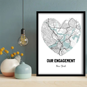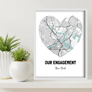 Design a map of the location where your engagement took place with our high-quality poster paper, complete with a stunning frame. Enjoy free shipping and an instant preview of your personalized design. Our paper has a thickness of 20-25 mm / 0.79" - 0.98" and is made of 200 gsm / 80 lb matte (uncoated) paper. Perfect for the USA market with a thickness of 1.9 cm / 0.75".