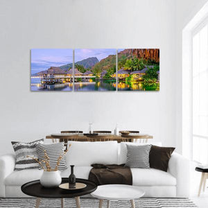 Overwater Bungalows At Dusk Panoramic Canvas Wall Art