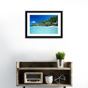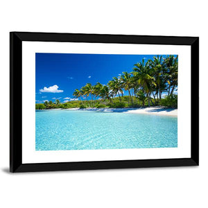 Bring the tranquility of a tropical beach to your space with this stunning canvas wall art featuring lush palm trees and serene turquoise waters. The photorealistic style captures the peaceful ambiance of a perfect vacation day, inviting a sense of calm to any room.