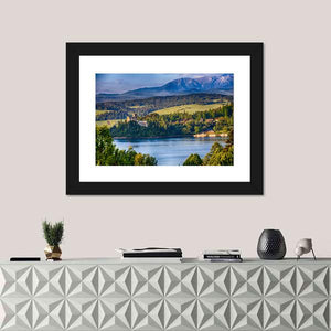 This canvas art captures a stunning landscape from Niedzica, featuring a serene lake with a castle perched on a hill. The background showcases snow-capped mountains, while lush forests and rolling hills create a picturesque scene that invites tranquility into any space.