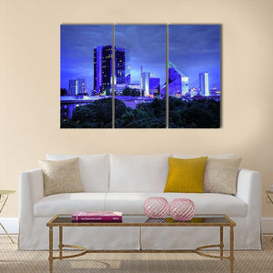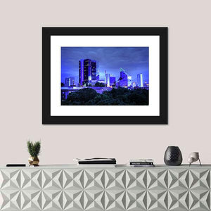 This stunning canvas art features a panoramic view of Tallinn's modern skyline set against a dramatic, nocturnal backdrop. With vibrant colors and illuminated windows against a cloudy sky, it captures the essence of urban beauty.