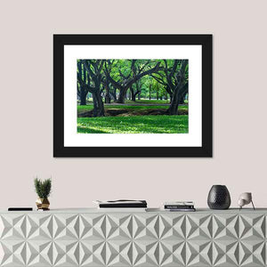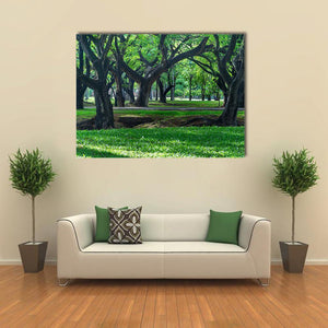 This canvas wall art captures the serene beauty of a park in Thailand, featuring lush trees and grass. The peaceful scene, with sunlight filtering through leaves and dense tree trunks, creates a natural ambiance perfect for any space.