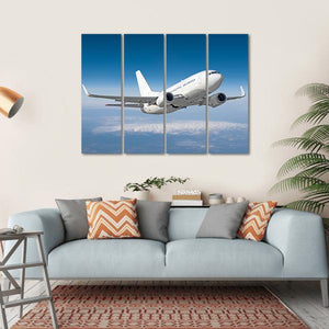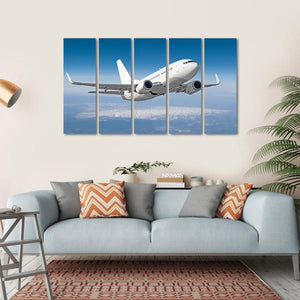 This canvas art captures a passenger airplane in flight against a backdrop of wispy clouds and a blue sky. The scene evokes a sense of travel, freedom, and adventure, making it a perfect fit for any modern décor.
