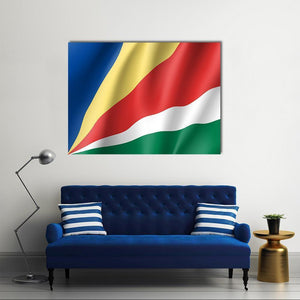 This vibrant canvas art features the flag of Seychelles in a dynamic, abstract design. With a palette of blue, yellow, red, white, and green, it adds a colorful touch to any space, perfect for showcasing your pride in this beautiful nation.