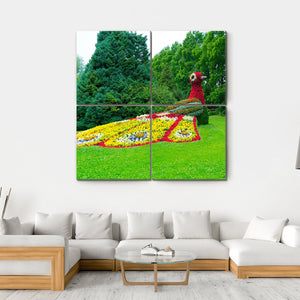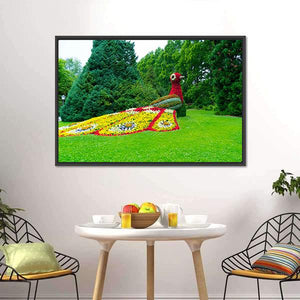 This vibrant canvas art features a whimsical topiary peacock crafted from flowers and greenery. Its joyful colors of green, yellow, and red bring a lively touch to any space, making it an excellent choice for nature lovers and garden enthusiasts.