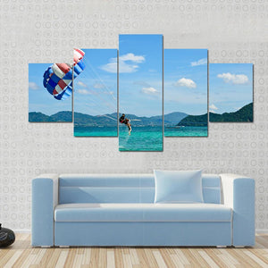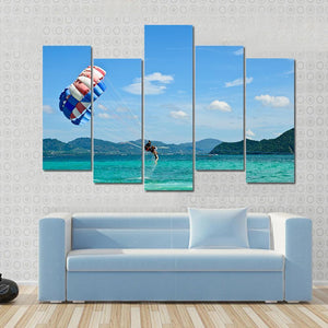 This vibrant canvas art captures the thrill of parasailing in Phuket. With rich blues and greens, it brings a lively and adventurous spirit to any space.