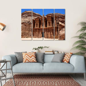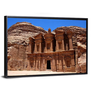 This canvas wall art captures the majestic Petra Treasury, showcasing its intricate rock carvings and grand facades. The awe-inspiring palette of browns and blues creates a historic atmosphere, perfect for adding a touch of sophistication to your decor.