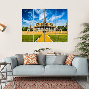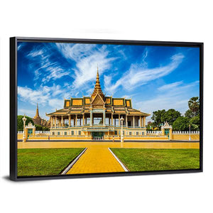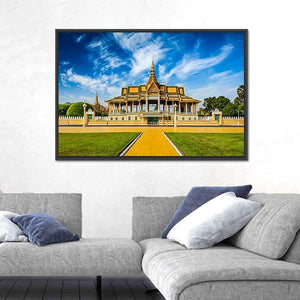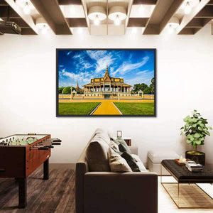 Bring the elegance of Cambodia's royal palace into your space with this captivating canvas wall art. The serene scene captures ornate architecture framed by lush gardens and a bright blue sky, creating a grand atmosphere that enhances any room's décor.