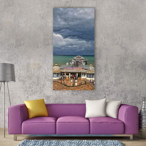 Crowded Seaside Pier on Overcast Summer Day Vertical Canvas Wall Art