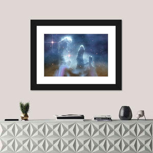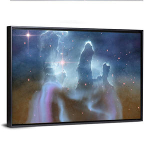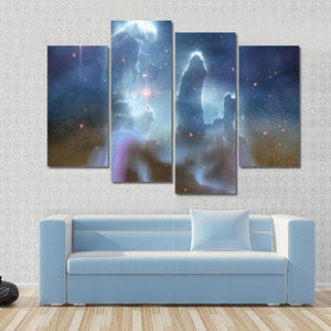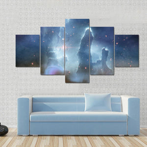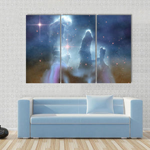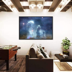 This abstract canvas art features the awe-inspiring Eagle Nebula, showcasing glowing pink and white formations amid a sea of blue space clouds. With its cosmic vibe, it's a captivating piece for any modern room decor.