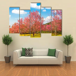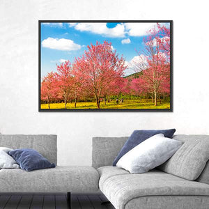 Pink Cherry Blossoms in a Field Canvas Wall Art