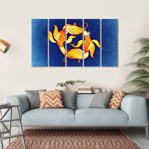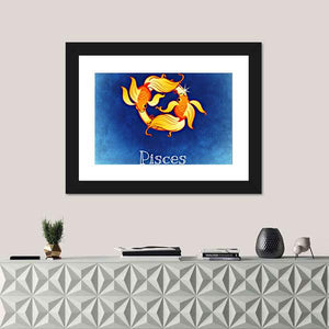 Celebrate your astrological sign with this whimsical Pisces wall art featuring two stylized fish intertwined. The vibrant colors blend blue, orange, yellow, and white, bringing a colorful touch to your space.