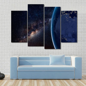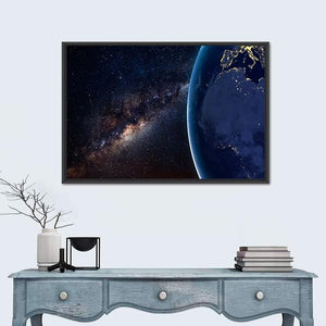 Planet Earth and Milky Way at Night Canvas Wall Art