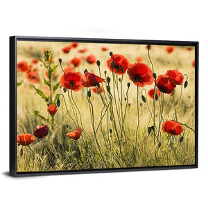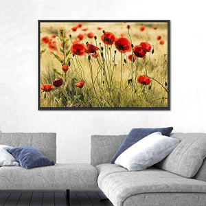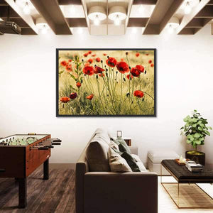 Bring the beauty of nature into your space with this vibrant canvas art featuring a field of red poppies swaying gently in tall grass. The realistic depiction and depth create a peaceful atmosphere that's perfect for any room.