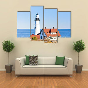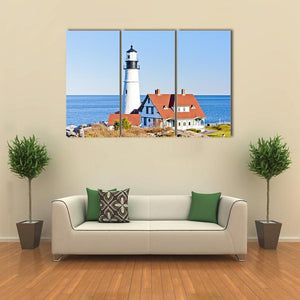 This canvas art features the iconic Portland Head Lighthouse set against a serene ocean backdrop. The peaceful tones of blue and white invite a coastal vibe, making it a lovely addition to any wall.