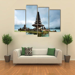 This photorealistic canvas artwork captures the serene beauty of Pura Ulun Danu Bratan Temple, surrounded by a tranquil lake and delicate water lilies. The harmonious blend of blue, green, brown, and gray complements a variety of spaces, making it an inviting addition to your home decor.
